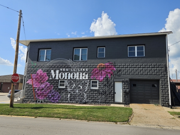 Artist Shawna Marie McLeod completed Monona’s new mural last week. Located on the south side of the building at 111 North Main Street, the mural features the words “You’ll like Monona,” along with flowers and a butterfly design that people can use as a photo prop. (Destiny Kapler/The Outlook photo)